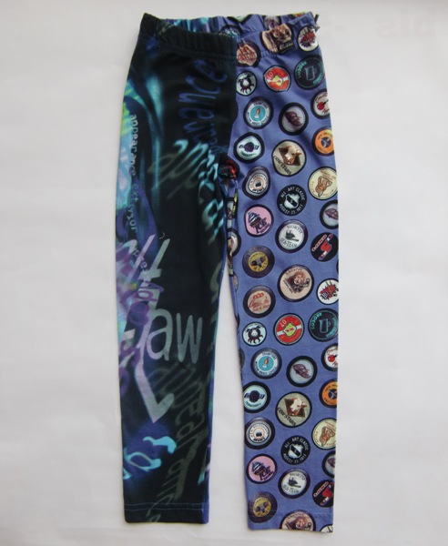 Ausgefallene Carbone Legging 7/8 purple badges, die beiden Beine im Mustermix. Perfekt passend zu den Kleidern und Tuniken!