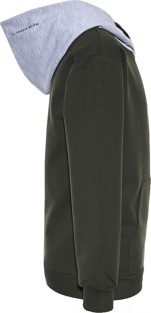 Kapuzen-Sweat-Shirt von Blue Effect in army green used, mit Kanguru-Taschen, graue Kapuze.