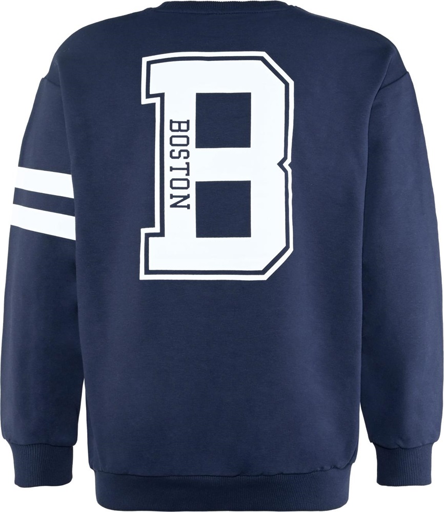 Endlich auch mal für die Jungs ein super Oversized Sweat-Shirt von Blue Effect mit großem weißem "B"-Rücken-Print und sportlichen weißen Streifen auf dem linken Oberarm.