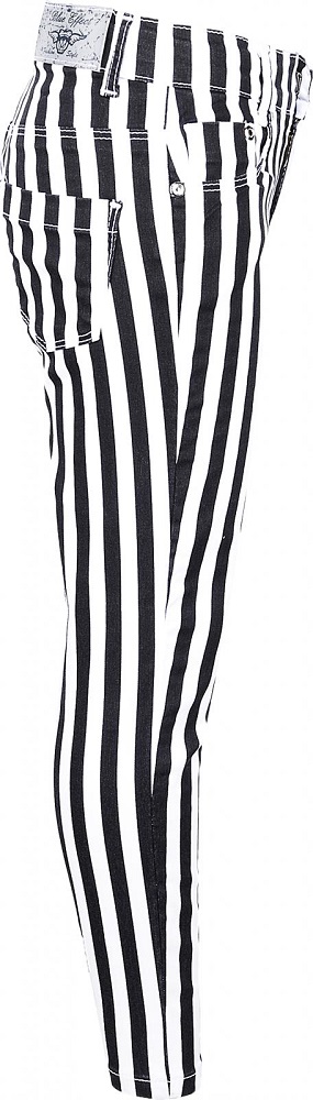 Angesagte und super bequeme, schwarz weiß gestreifte, High-Waist Hose von Blue Effect, cropped, 7/8-Länge, 5-Pocket-Style, perfekter Sitz, tolles Material, Bund innen regulierbar.