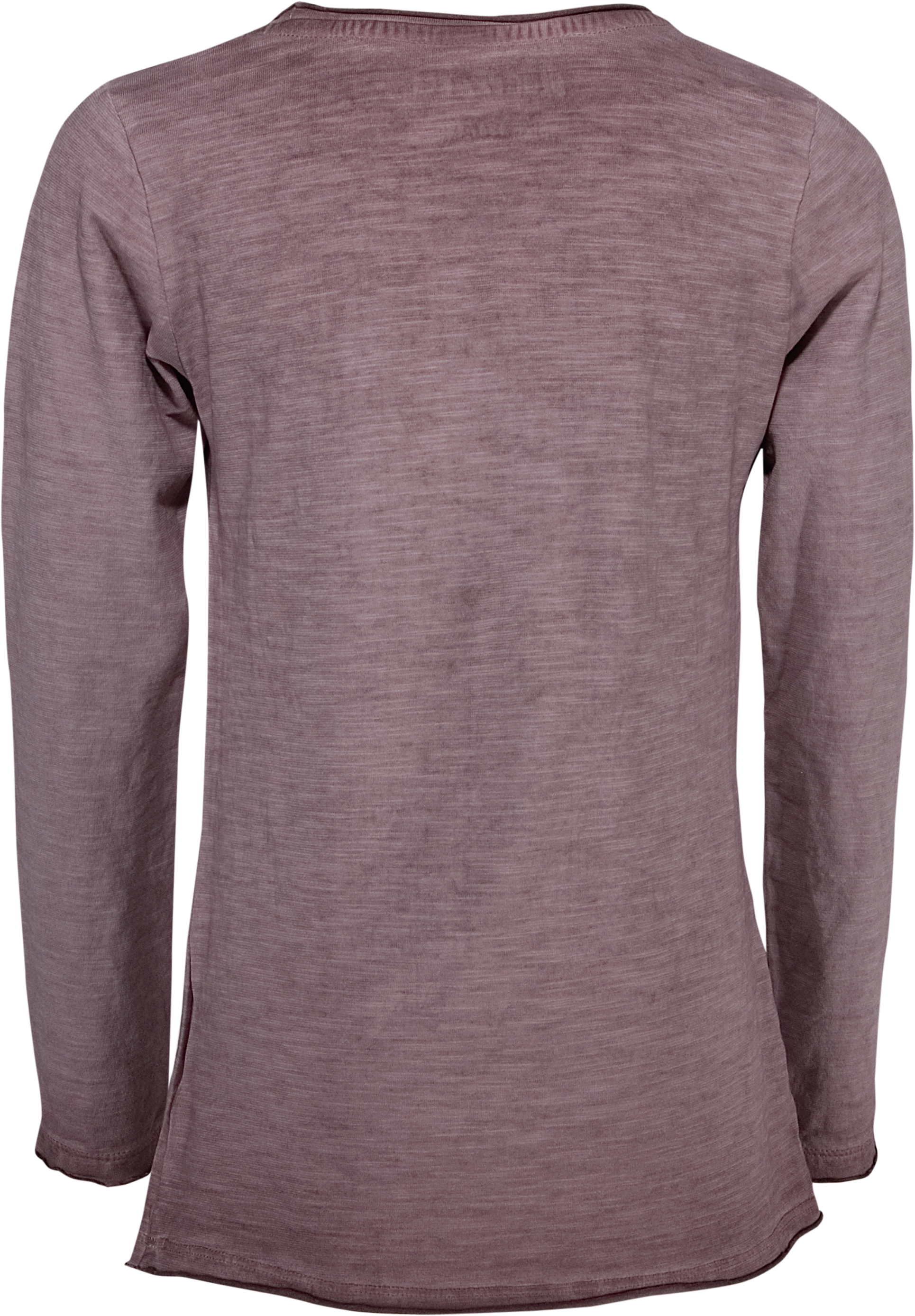 Superschönes Langarm-Shirt/Longsleeve von Blue Effect in mesarose, vorne mit Print und Strass geschmückt, offene Kanten vervollständigen den lässigen Style.