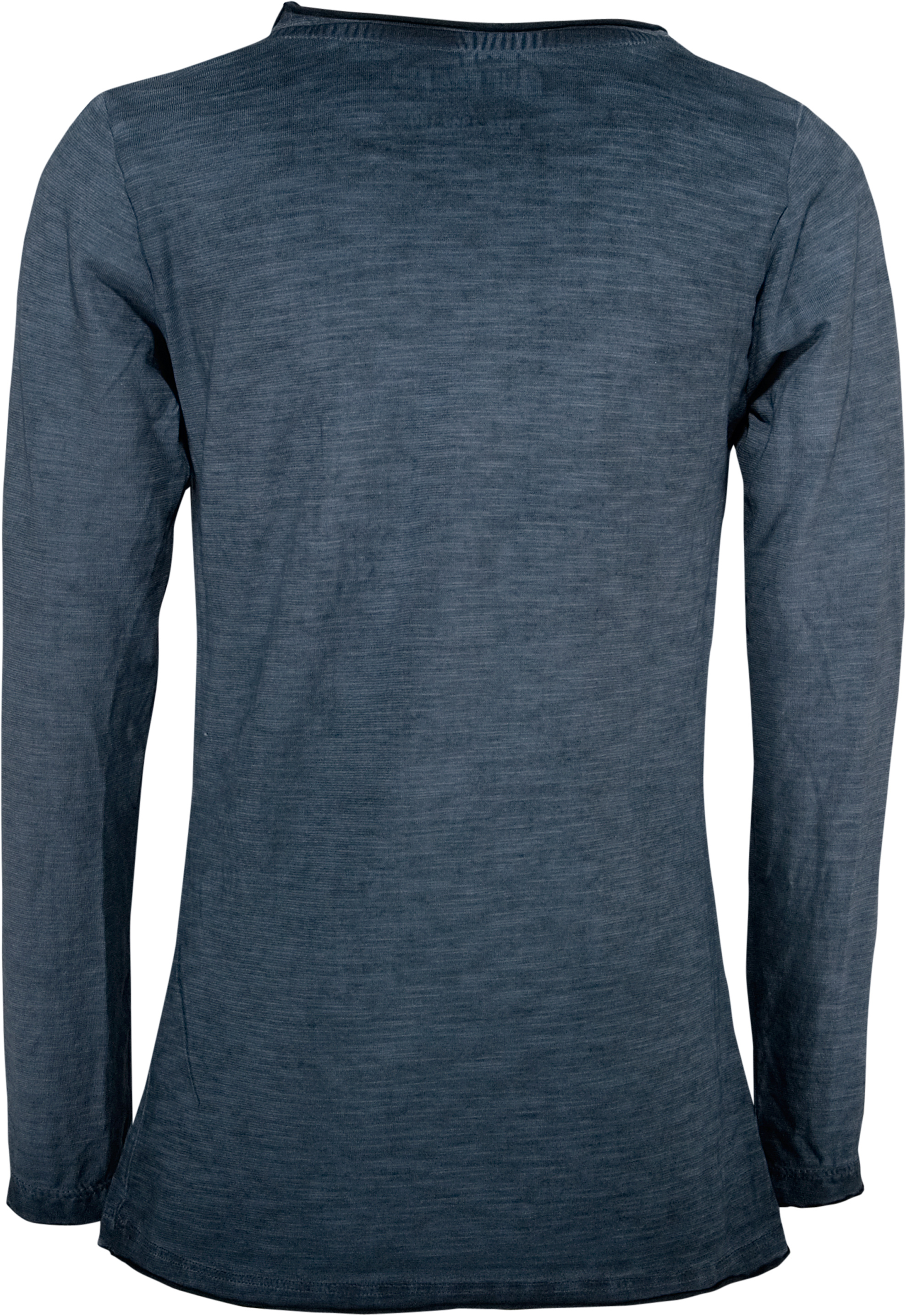 Superschönes Langarm-Shirt/Longsleeve von Blue Effect in petrol, vorne mit Print und Strass geschmückt, offene Kanten vervollständigen den lässigen Style.