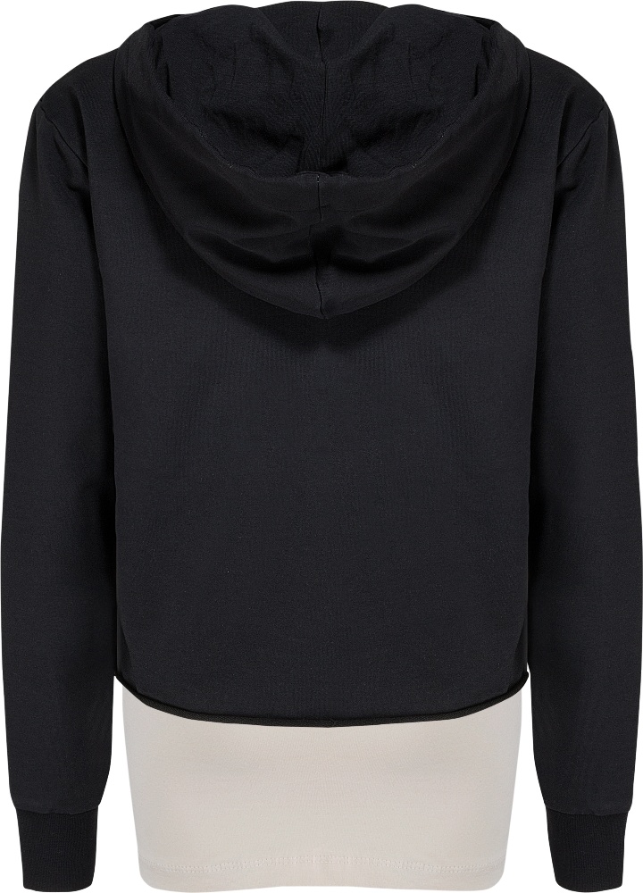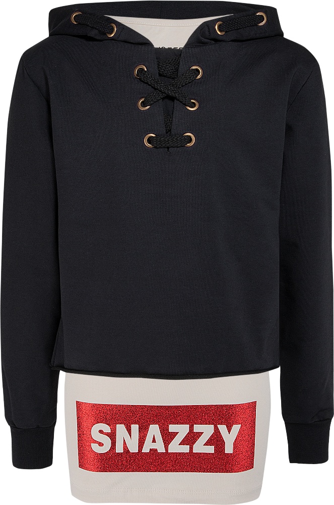 Trendiges Boxy Kapuzen-Sweat-Shirt von Blue Effect 2tlg. Das Oberteil schwarz und das Top offwhite mit SNAZZY Print