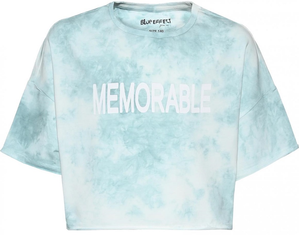 Tolles Batik T-Shirt von Blue Effect im Boxy-Style mit "MEMORABLE"-Print auf der Front.