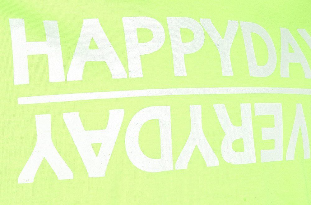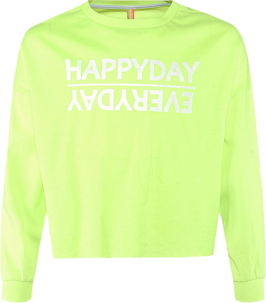 Boxy Sweat-Shirt von Blue Effect in neongelb mit HAPPYDAY-Front-Print.