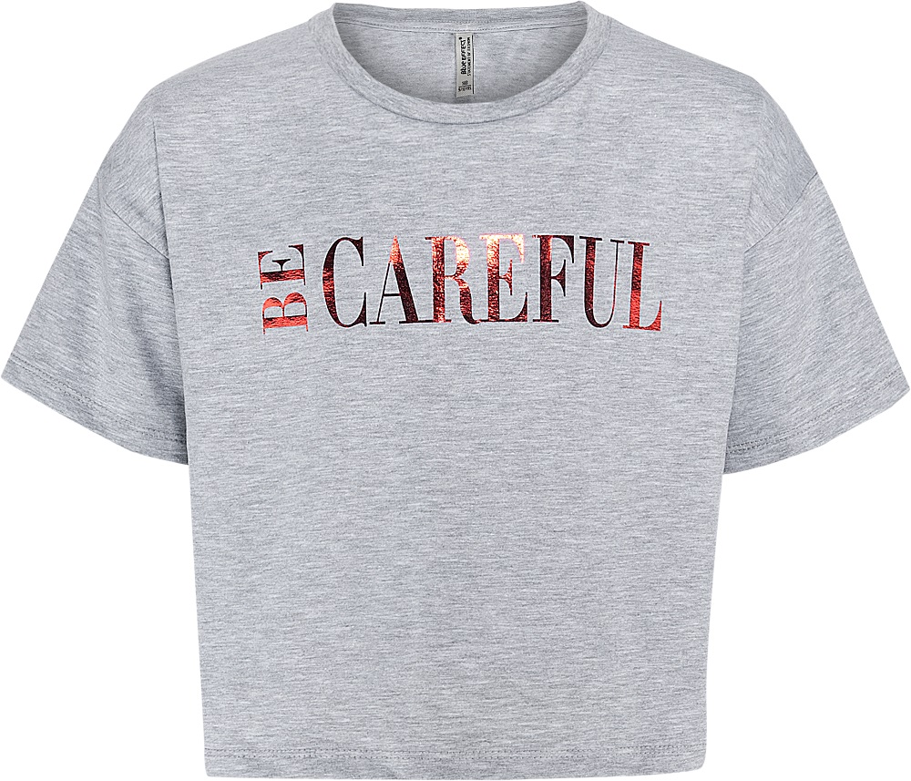Blue Effect Mädchen Boxy T-Shirt BE CAREFUL hellgrau melange 140
