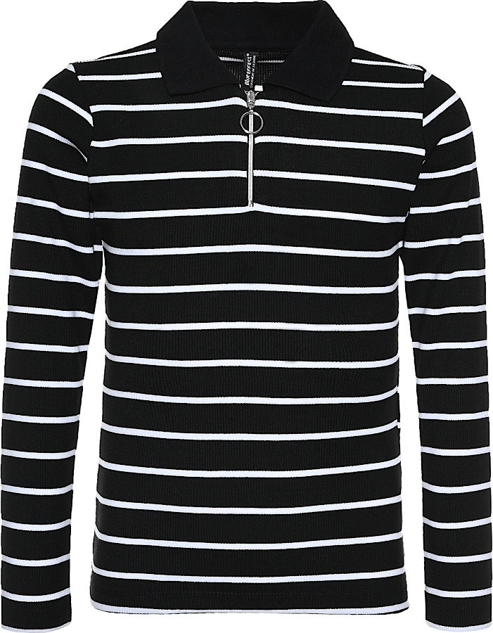 Langarmshirt im Streifenlook mit Zipper von Blue Effect in schwarz weiß.