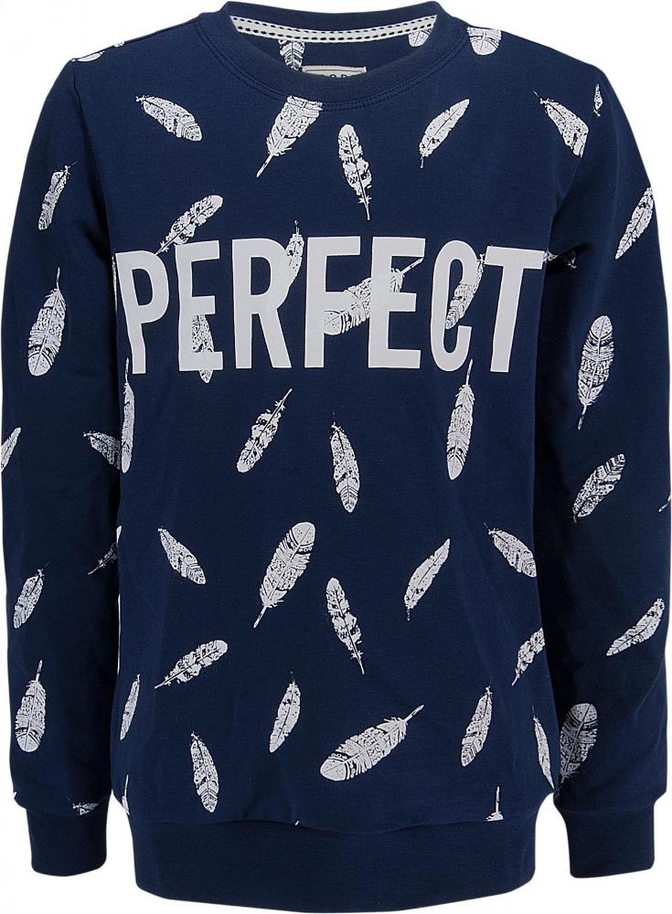 Schönes Sweat-Shirt von Blue Effect in tinteblau allover, allover Feder-Print und Front-"PERFECT"-Print.