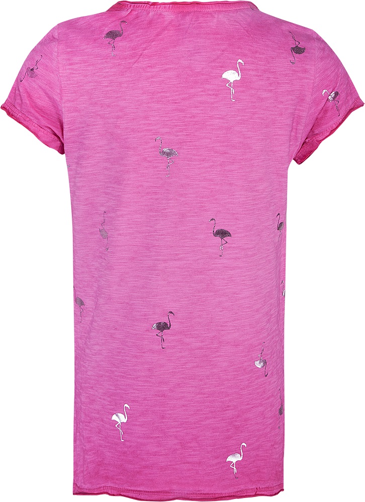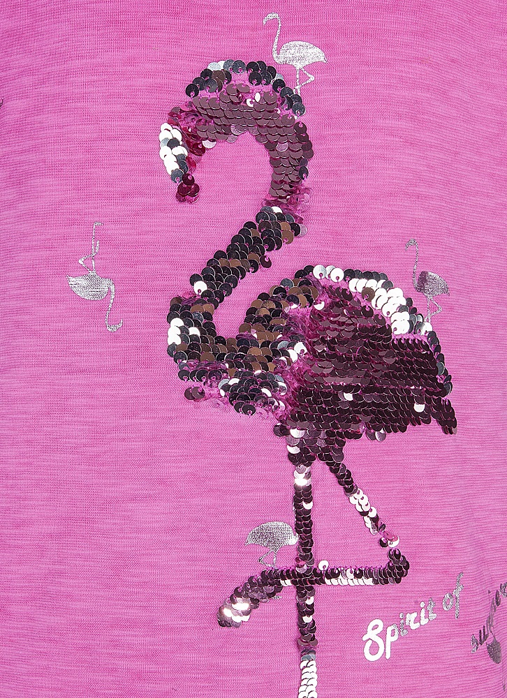 Hübsches T-Shirt von Blue Effect mit Wendepailletten Motiv Flamingo und zusätzlich silbernen Flamingo-Prints allover.