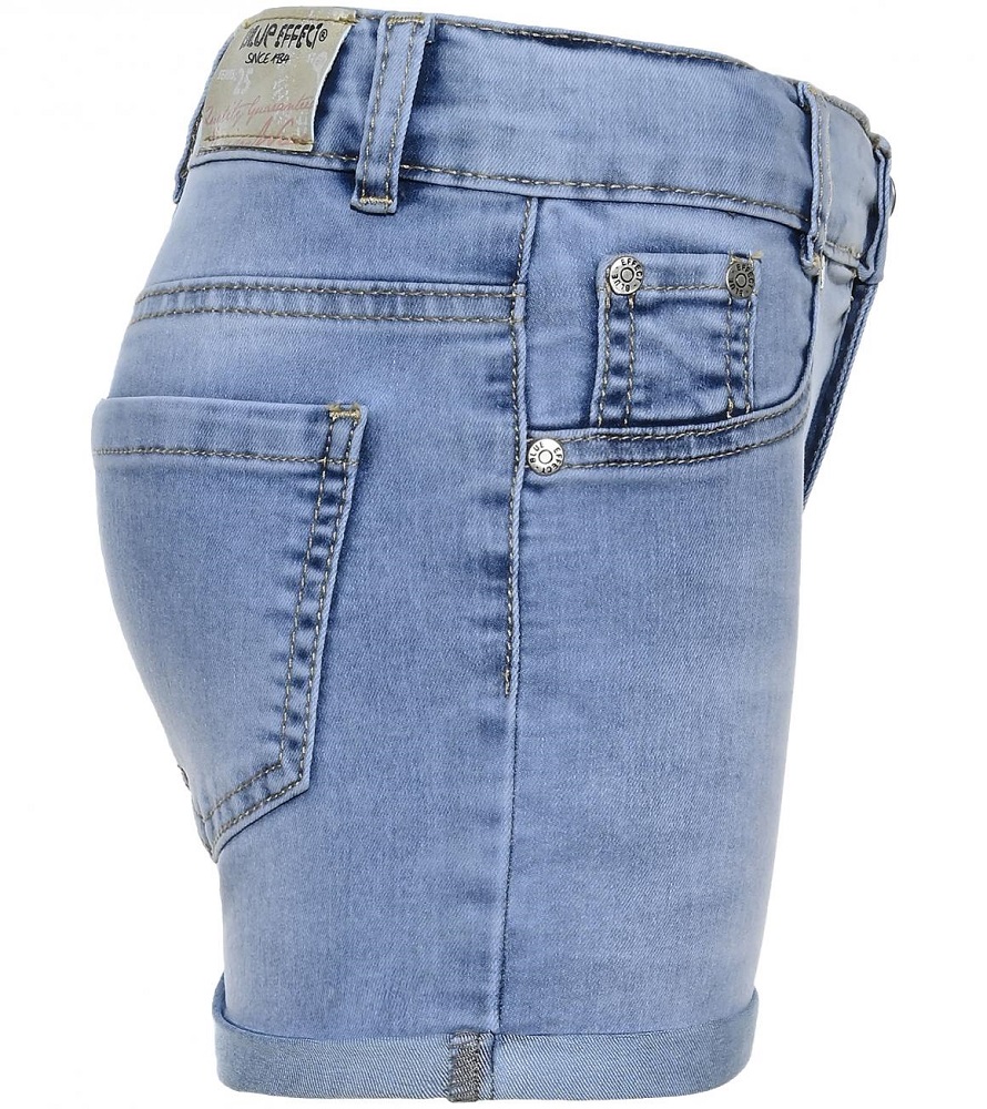 Super Jeans Shorts von Blue Effect, 5 Pocket-Style, schöne Popo-Taschen, vorne Faketaschen, Bundweite innen regulierbar, Gürtelschlaufen.