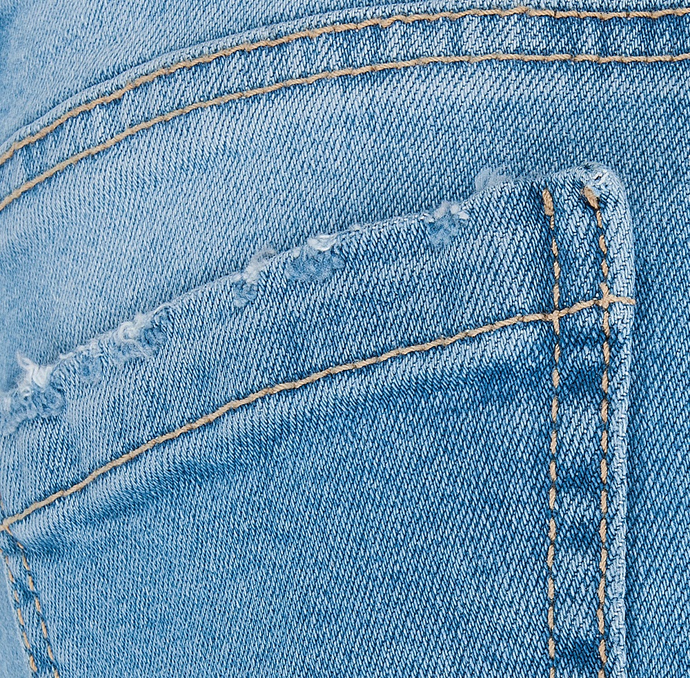 Angesagte High-Waist Jeans-Short von Blue Effect, 5 Pocket-Style, schöne Popo-Taschen, Bundweite innen regulierbar, Gürtelschlaufen.