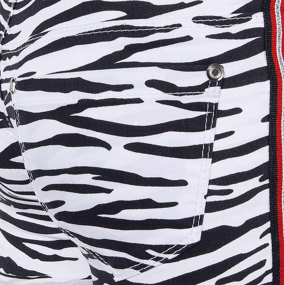Angesagte Animalprint Short von Blue Effect im Zebra-Look, mit seitlichem Streifen, 5-Pocket-Style, Bund innen verstellbar.