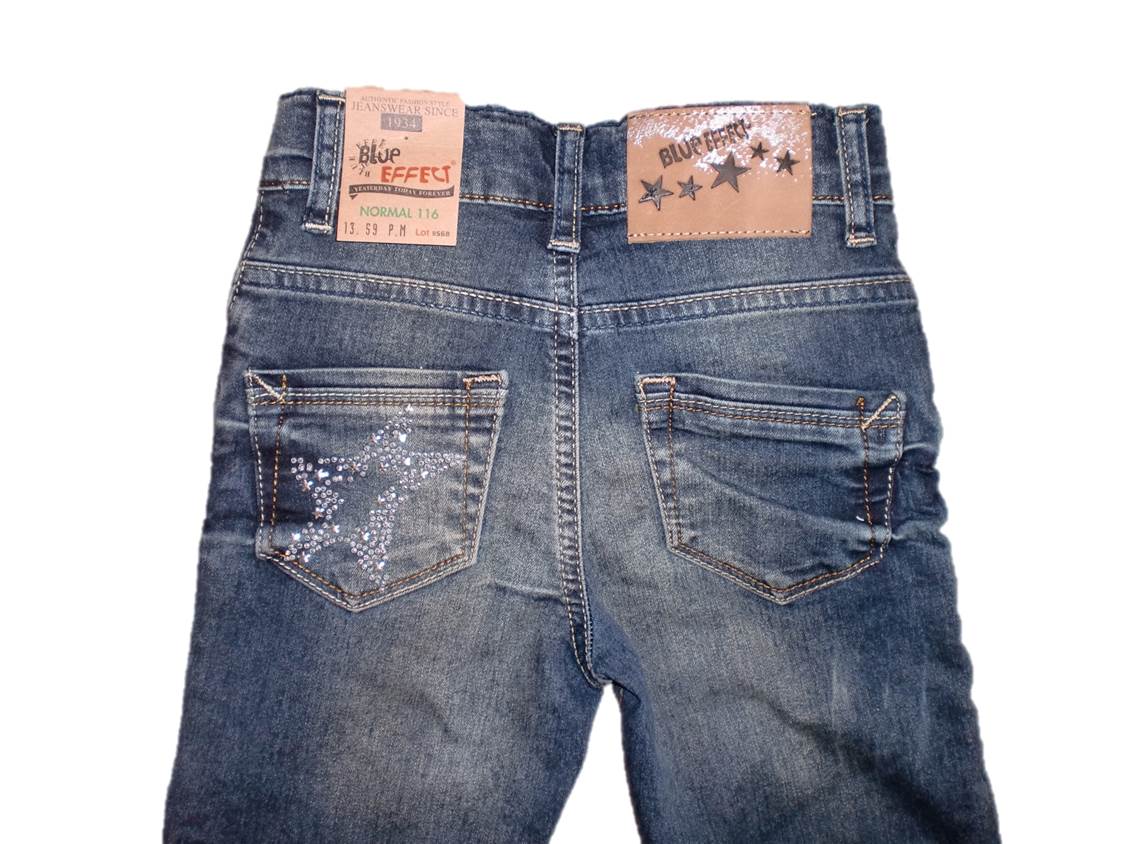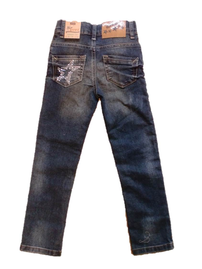Sehr schöne Blue Effect Jeans, dunkelblau, super Schnitt - 5 Pocket-Style, super Popo-Taschen - eine mit Strass-Stern, Bundweite innen regulierbar, Reißverschluss mit Logo-Knopf, Gürtelschlaufen. Für jedes Mädchen ein Muss!