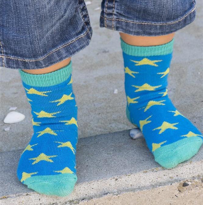 Schöne Socken in grün mit ....................................Sternen und blauem Bund/Verse/Zehen.