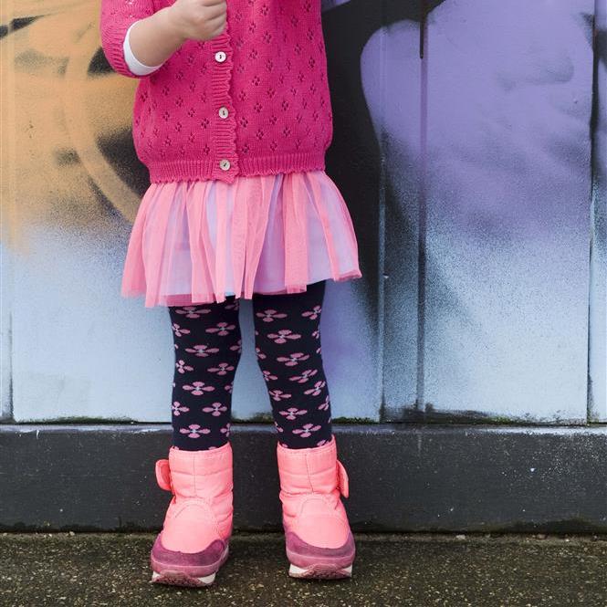Hübsche Bonnie Doon Baby Strumpfhose im Blumen-Look - am Popo mit großer Blume. Eine tolle Ergänzung zu allen Hosen, Shorts, Röcken und Kleidern.