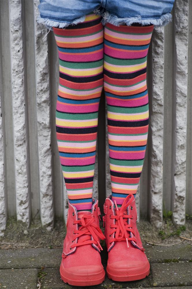 Flotte Baby Strumpfhose im Streifen Look. Eine tolle Ergänzung zu Röcken, Kleidern, Bermudas, Shorts. Angenehm zu tragen mit gekettelter Zehennaht! Hier drückt nichts!