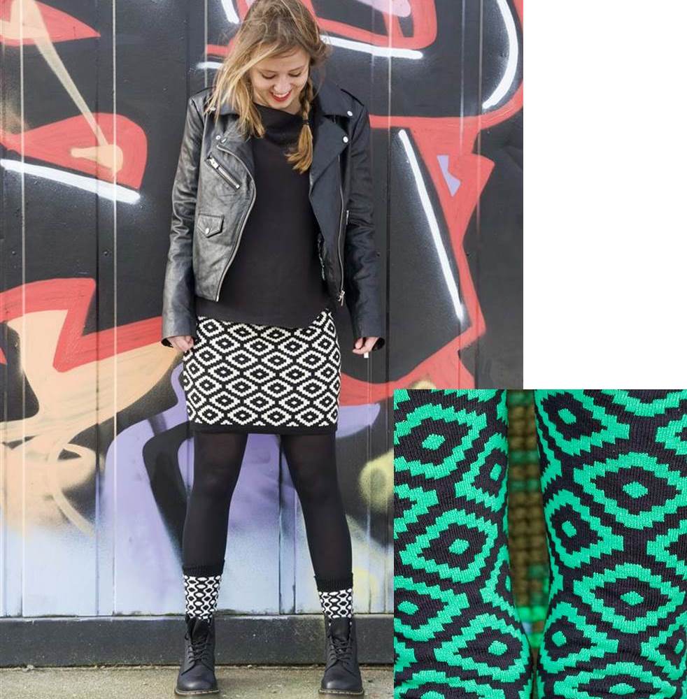 Bonnie Doon Damen Strick Rock AZTEC schwarz/grün