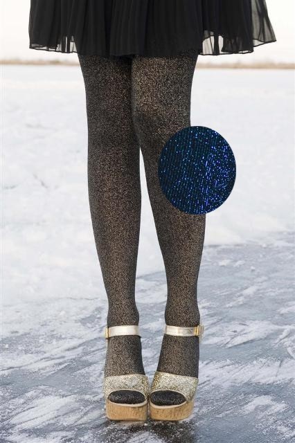 Luxoriöse Strumpfhose im Glitzer-Look - aber trotzdem schön warm. Eine tolle Ergänzung zu Röcken, Kleidern, Bermudas, Shorts.