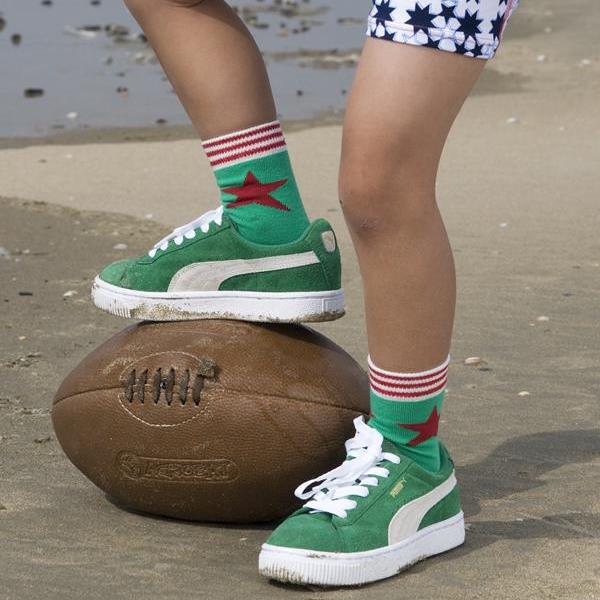 Sportliche Bonnie Doon Socken in grün mit Stern und einem gestreiften Bund, eine tolle Ergänzung zu Jeans, Shorts und Bermudas.