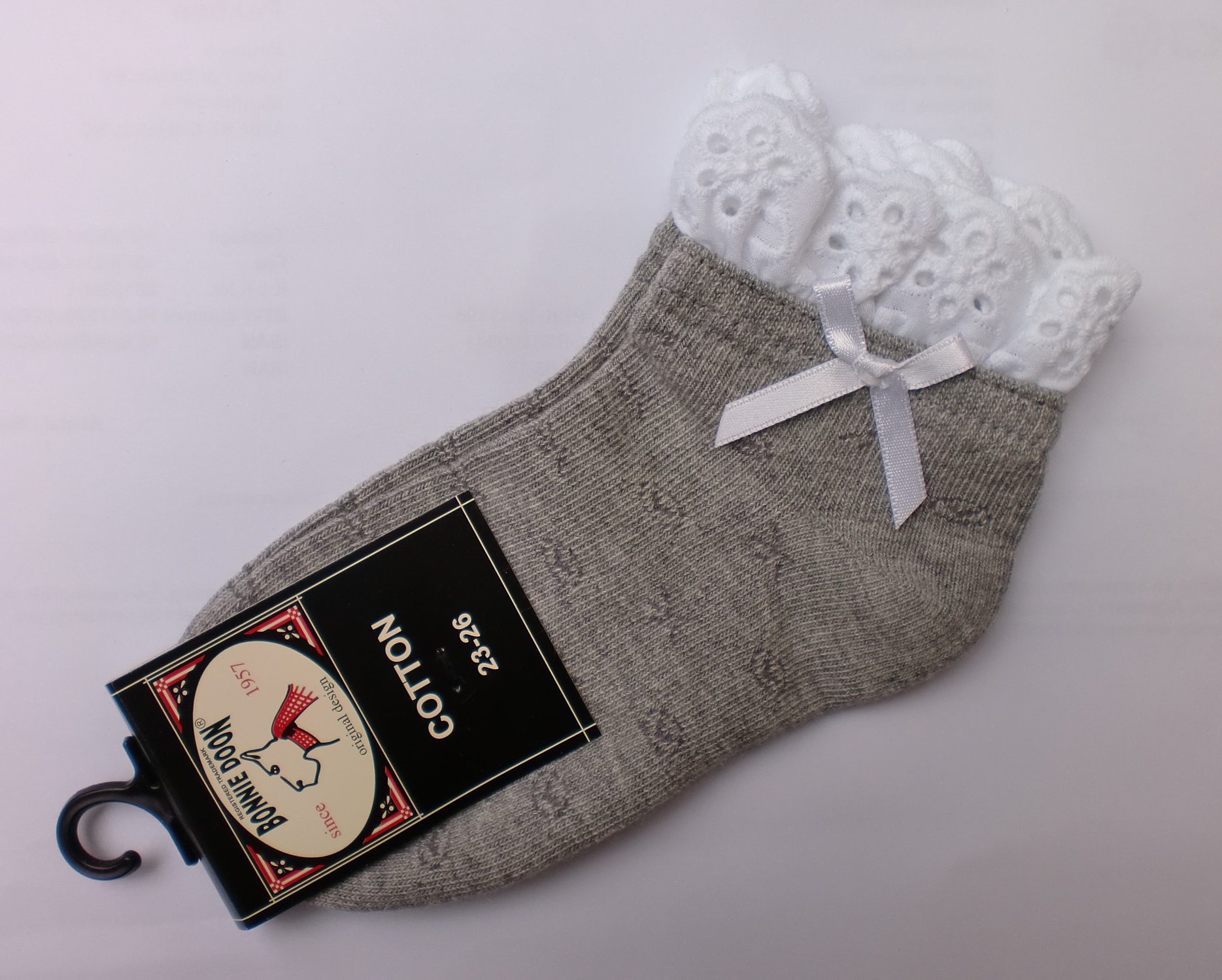 Bonnie Doon kurz-Socken Broderie hellgrau mit Spitze Gr. 23-26