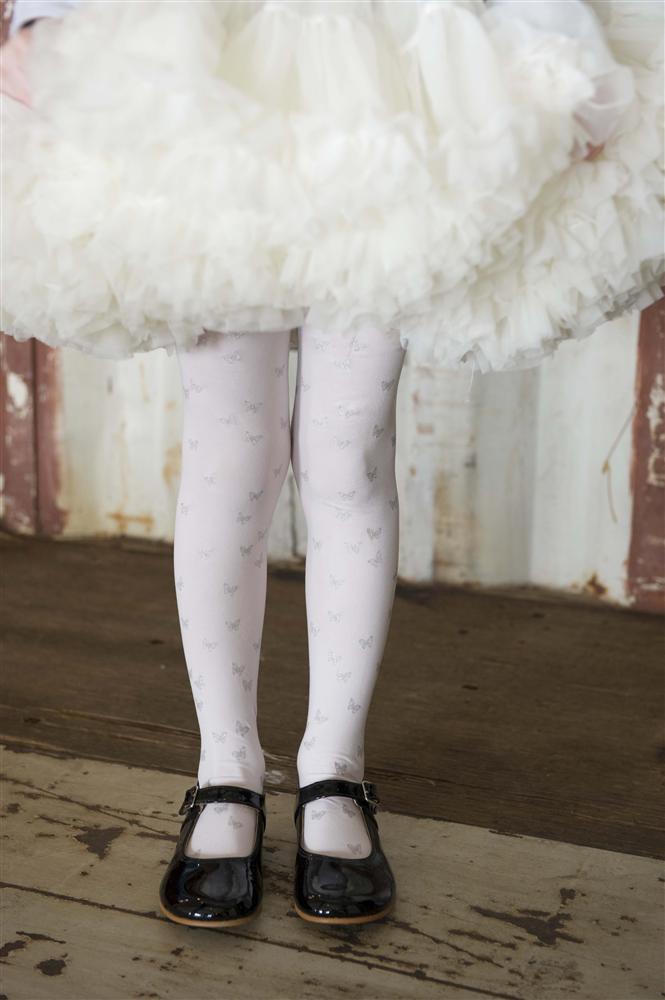 Super Strumpfhose mit Glitter-Schmetterlings-Print. Eine tolle Ergänzung zu Röcken, Kleidern, Bermudas, Shorts.