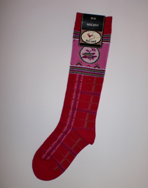 Wunderschöner Bonnie Doon Kniestrumpf in karminrot im Mustermix, eine tolle Ergänzung zu allen Kleidern, Röcken und Hosen!