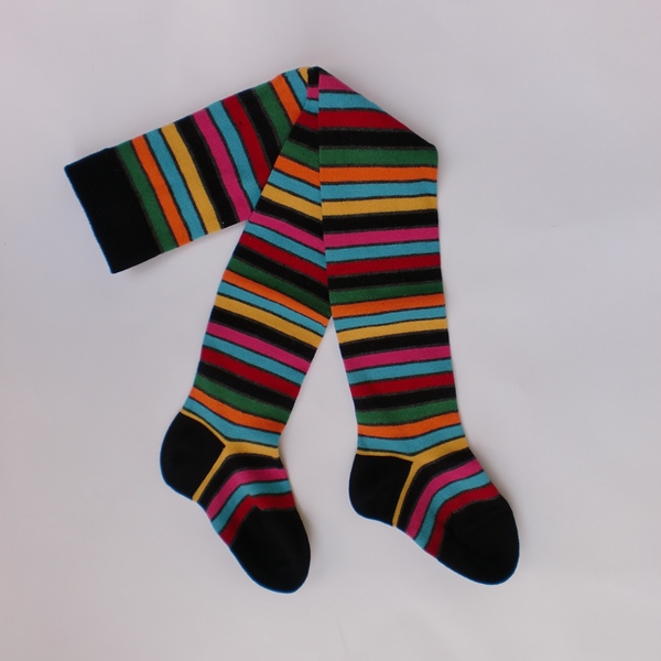 Super Strumpfhose im bunten Streifen-Look. Eine tolle Ergänzung zu Röcken, Kleidern, Bermudas, Shorts. Dazu passend die Söckchen im selben Muster.