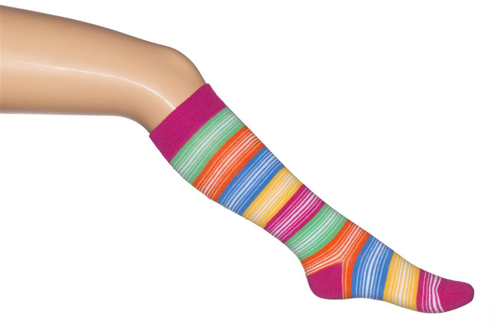 Witzige Kniestrümpfe im Streifen-Look von Bonnie Doon mit gekettelter Zehennaht - hier drückt nichts. Perfekt zu Röcken, Kleidern und kurzen Hosen kombinierbar.