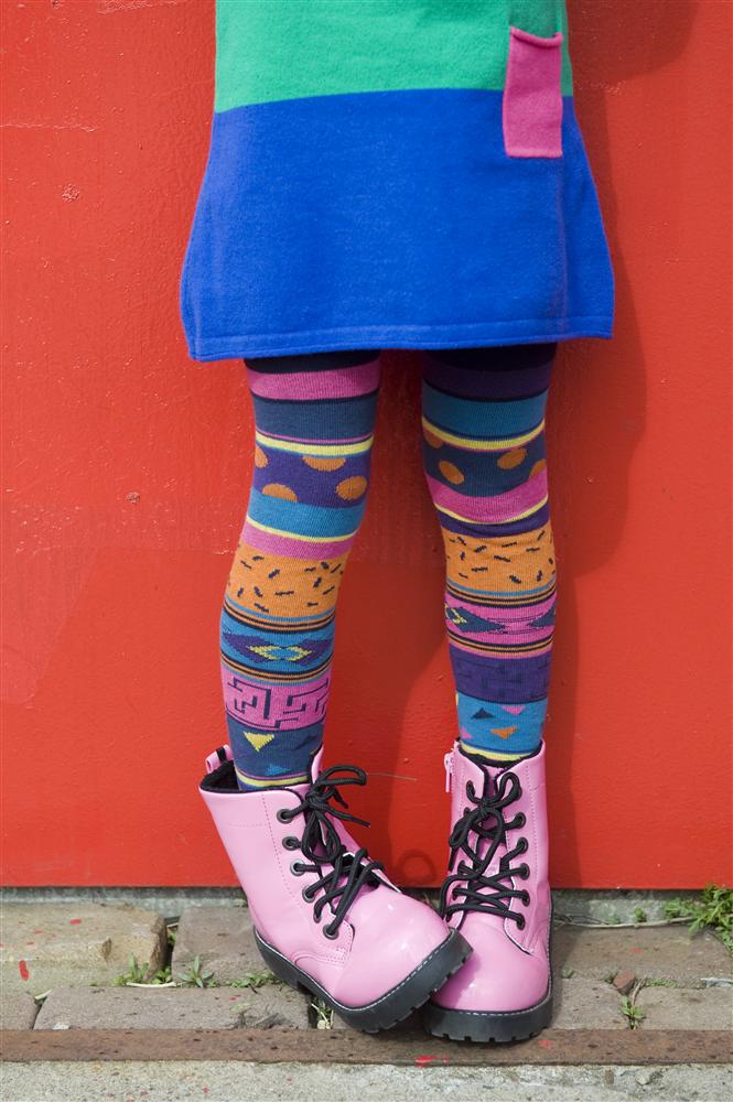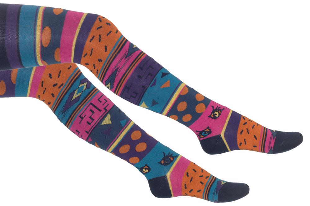 Fröhliche Strumpfhose im Mustermix-Look. Eine tolle Ergänzung zu Röcken, Kleidern, Bermudas, Shorts. Angenehm zu tragen mit gekettelter Zehennaht! Hier drückt nichts!