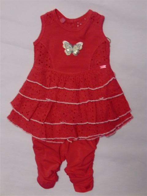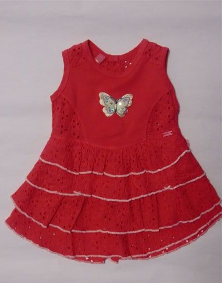 Sehr hübsches Kleid / Tunika in coralle von Carbone Mini im Material-Mix, mit Schmetterling-Applikation, Volant-Rock, im Rücken durchgehend zu knöpfen.