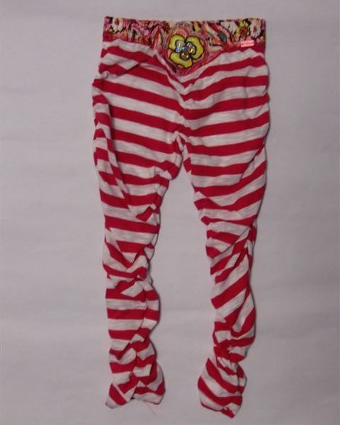 Freche Legging von Carbone im Streifen-Look pink-weiss, Gummizugbund mit Blütenapplikation, mit Raffung in den Seitennähten.