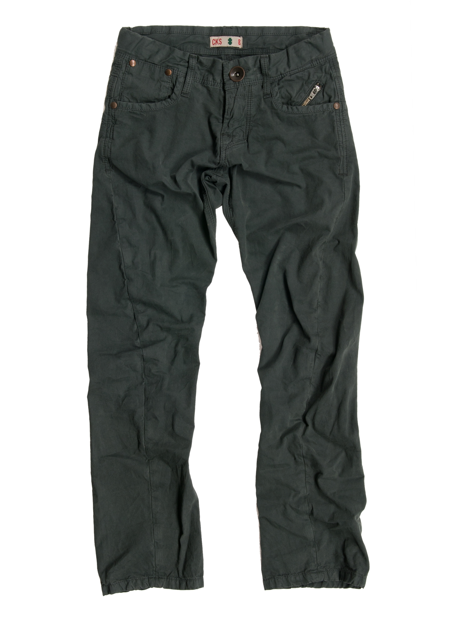Coole Hose von CKS, 5-Pocket-Style, zwei Taschen vorne und zwei große tiefer gesetzte Popo-Taschen, Bundweite innen verstellbar, Reissverschluss mit Knopf.