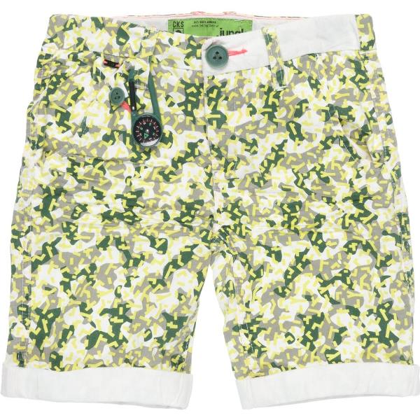 Coolste camouflage Bermuda von CKS in grün-grau-offwhite, Bund innen weitenverstellbar, zwei Eingrifftaschen vorne und hinten zwei Eingrifftaschen mit Knopf.