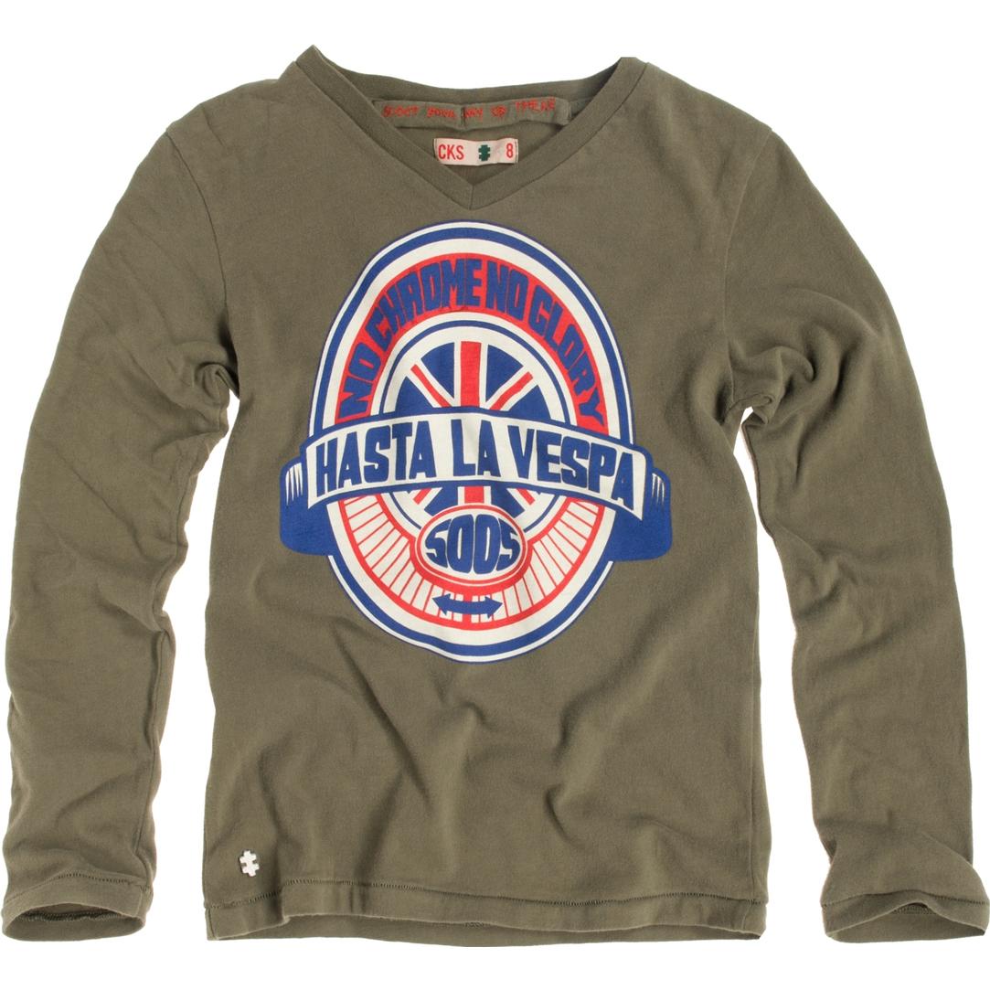 Lässiges Langarm-Shirt/Longsleeve von CKS in khaki mit Print und V-Ausschnitt.