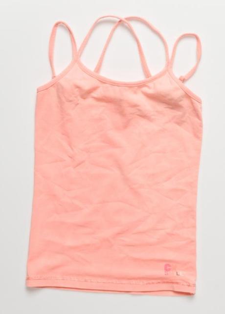 Tolles Basic-Top von CKS in campari orange, zwei Spagetti-Träger von denen sich jeweils ein Träger am Rücken kreuzt.