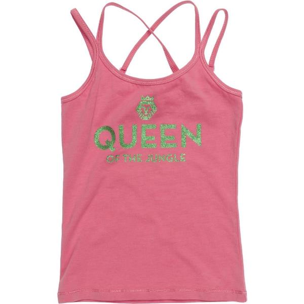 Tolles Top von CKS in pink mit grünem glitzer Schrift-Print, jeweils zwei verstellbare Spagetti-Träger von denen sich immer einer Träger am Rücken kreuzt.