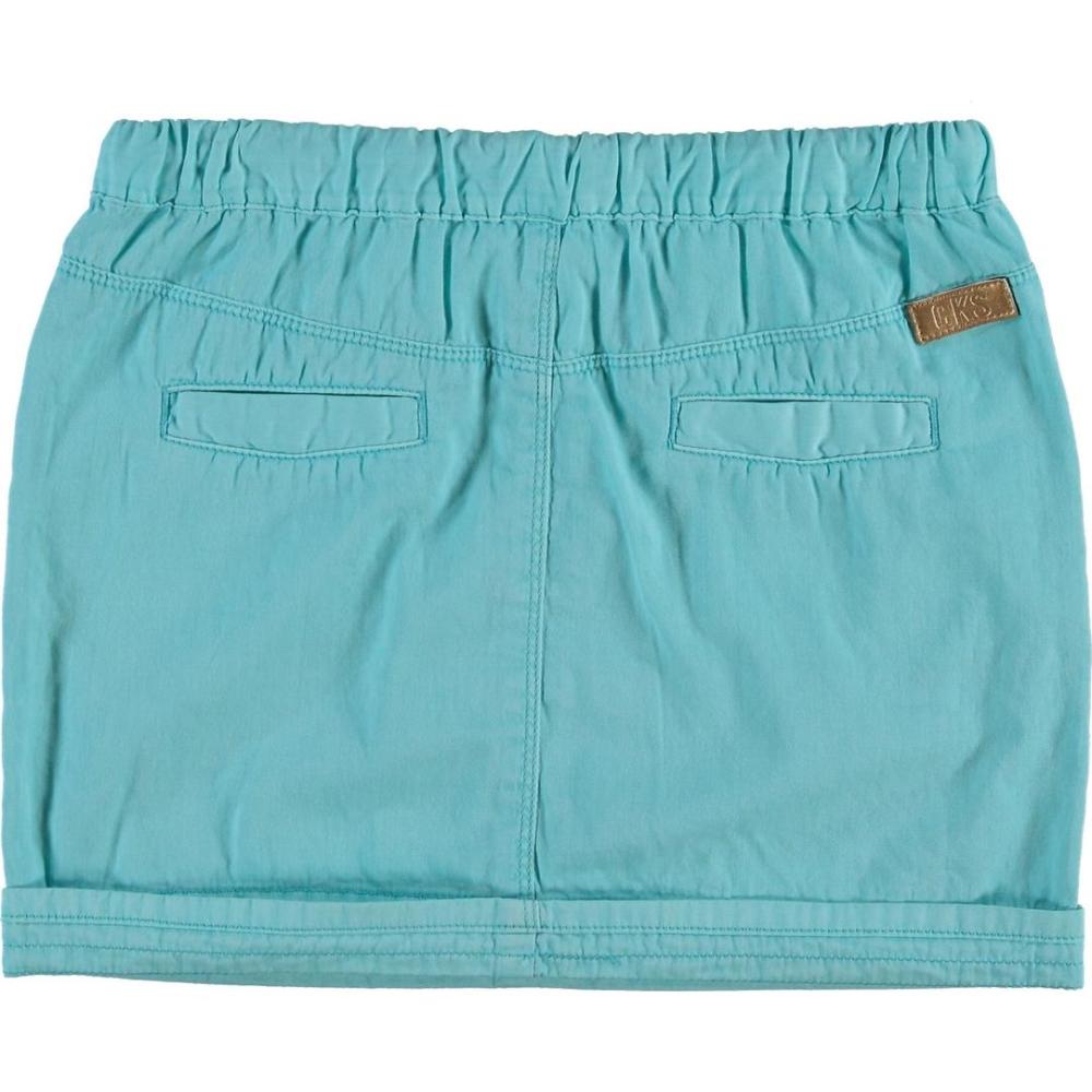 Hipper Mini-Rock von CKS in einem schönen verwaschenen hellen blau, vorne zwei Eingriff-Taschen, hinten zwei Fake-Taschen, am Bund einmal hochgeschlagen. Bundweite durch Tunnelzug verstellbar!