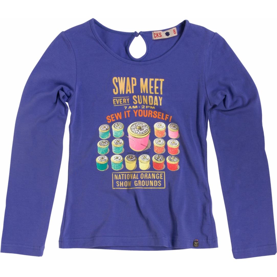 Schönes Langarm-Shirt/Longsleeve von CKS in bluish lavender mit großem Front-Print, Rundhals-Ausschnitt und hinten mit einem kleinen Knopf zu schließen.