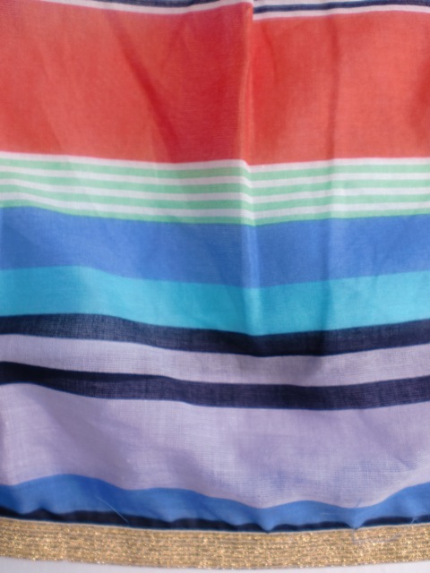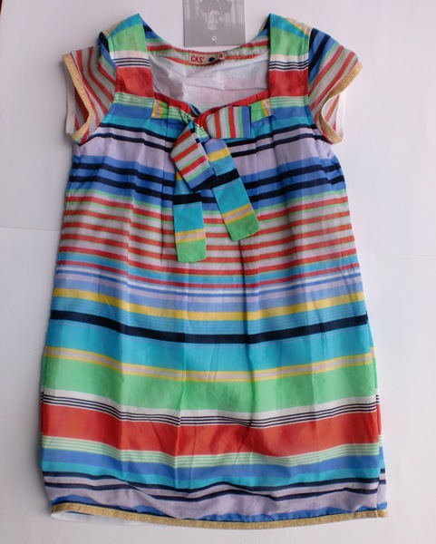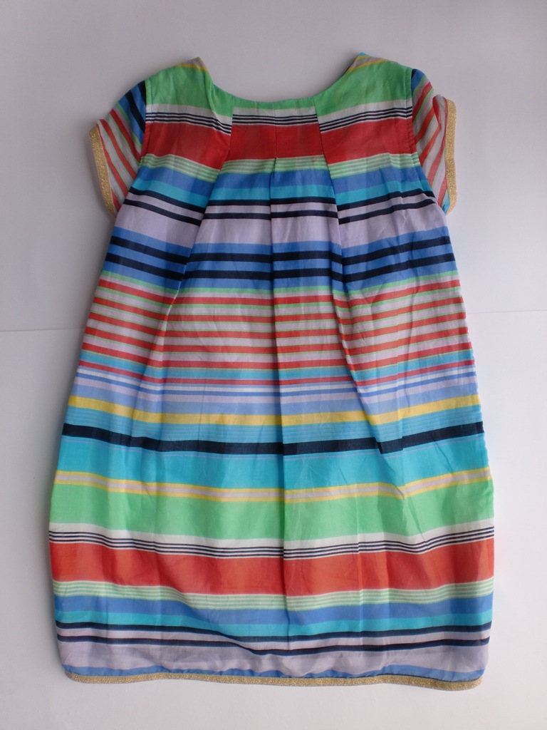 Schönes Streifen-Kleid von CKS mehrfarbig, vorne am Ausschnitt eine Schleife und glitzer-Borte an Armen und Saumabschluss; einfach Bezaubernd.