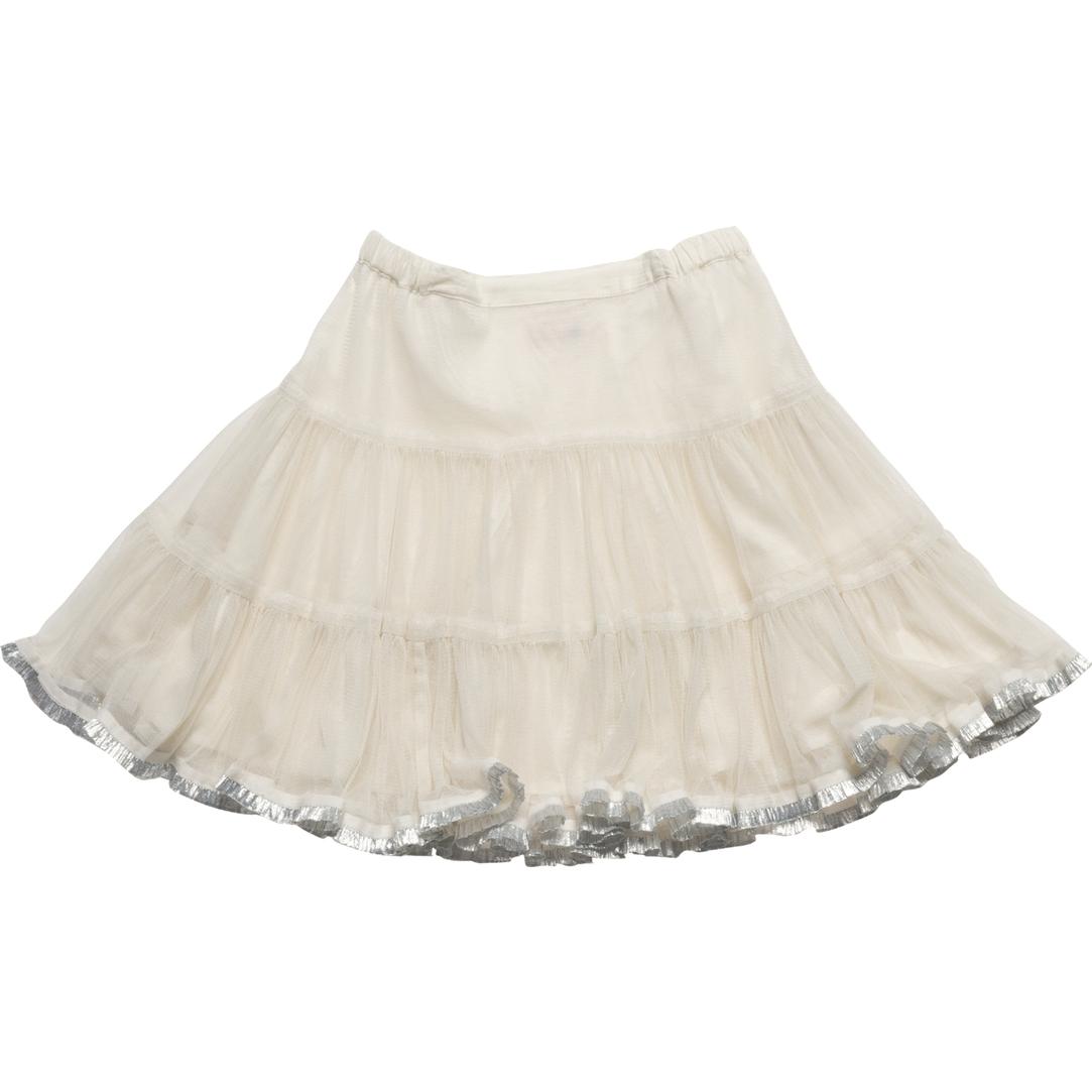 Schöner Petticoat-Rock von CKS in weiß, mehrlagig, glitzerbordüre am Saumabschluss und halber Gummizugbund und verstellbar.