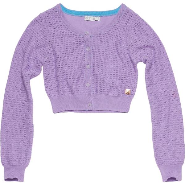 Schöner Bolero von CKS in lila (helles flieder), in Feinstrick, vorne und an den Armen mit Lochmuster, mit Knöpfen zu schließen.