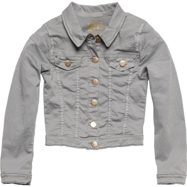 Trendige Jacke von CKS in grau, mit tollen Kontrastnähten zum Teil mit glitzer, vorne zwei fake Brusttaschen und mit Knöpfen zum schließen.