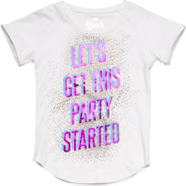 Hammer T-Shirt von CKS in weiß mit großem Front-Print und viel Glitzer - das besondere ist der abgerundete Bund.