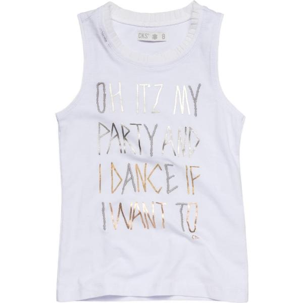 Traumhaftes Top von CKS in weiß mit edlem Schrift-Print in gold und silber und Stickerei.