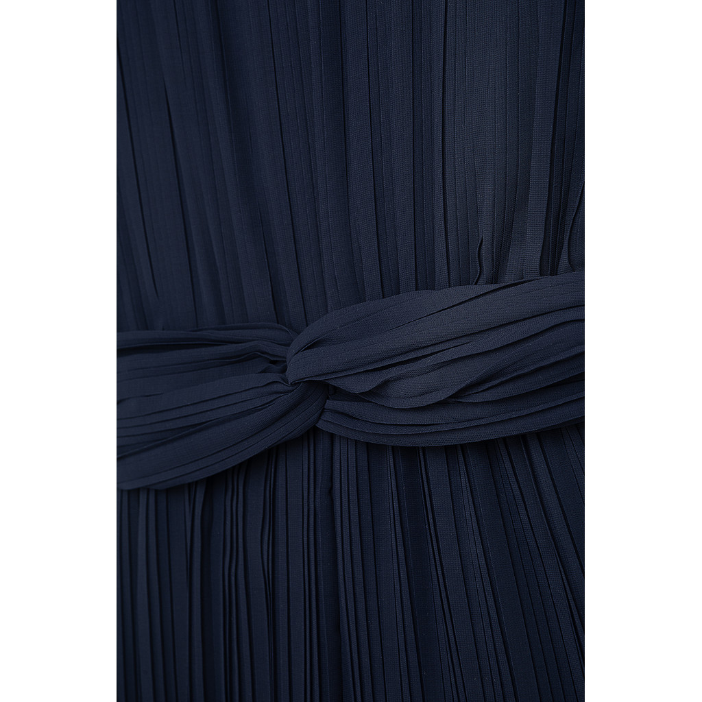 Ärmelloser Jumpsuit allover Plissee Chiffon. Am Rücken sorgen zwei versteckte Druckknöpfe für ein leichtes An- und Ausziehen. Die Taille ziert ein Plissee Chiffon Band welches hinten zu einer Schleife gebunden werden kann.