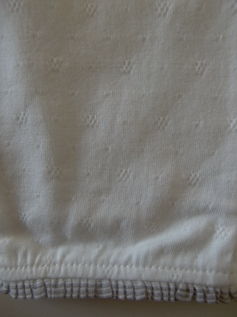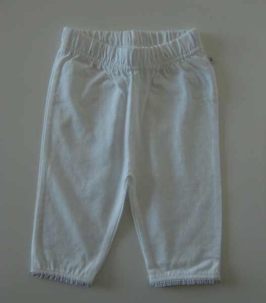 Knuffig weiche weisse Jacquard Legging von Ducky Beau,  mit elastischem Bund. Saumabschluss mit feinem  grauen gestreiften plissierten Rand.