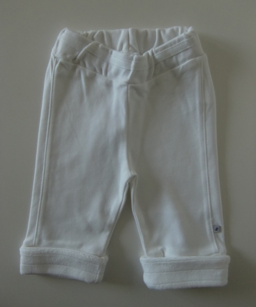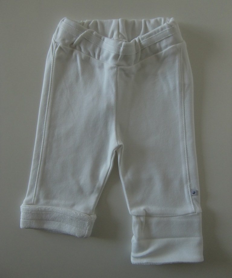Weiche weiße Jersey-Hose von Ducky Beau, mit Beinaufschlag im Materialmix Frottee/Jersey, mit Gummizugbund, auf der Rückseite gesticktes Ducky Beau-Logo.