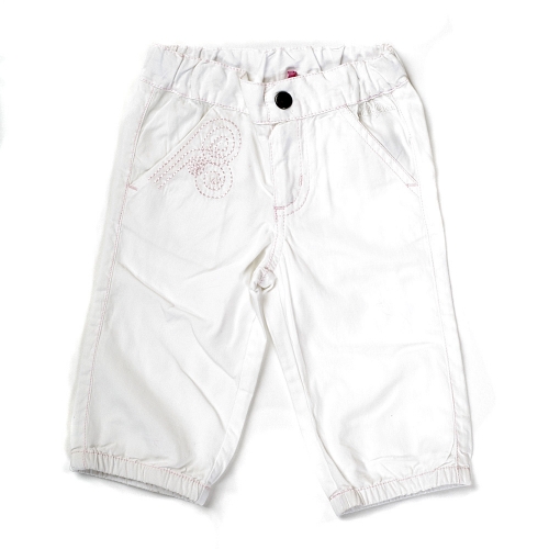 Niedliche, feine Sommer Hose, bequemer Rundumgummizug, mit Reißverschluss und Hakenknopf, zwei Einschubtaschen und schöner Stickerei, rosa abgesetzte Nähte.