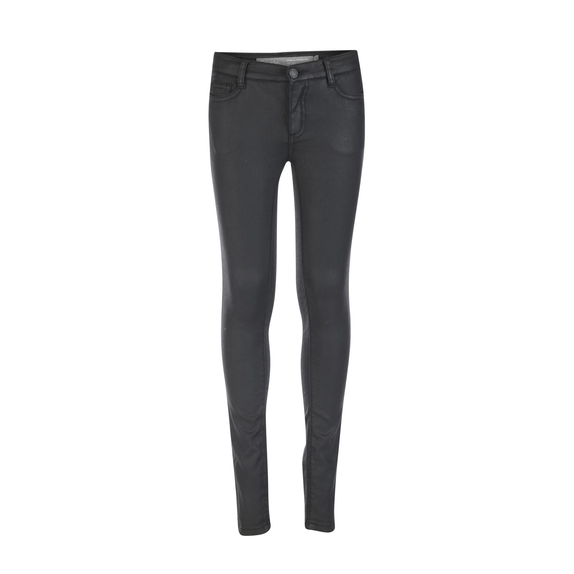 Super Jeans von von Geisha in schwarz, beschichtete Optik, leicht glänzend, schmale Form, tolles weiches Material.