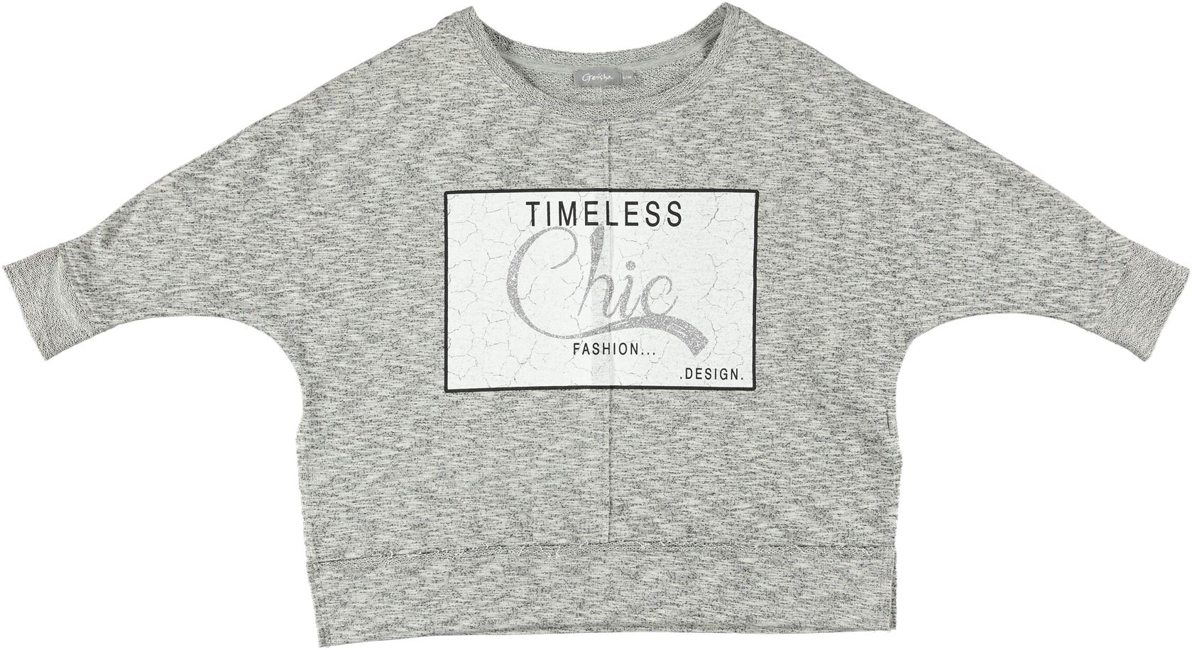 Superstylischer Sweater von Geisha, besonderes Design durch die Fledermaus-Ärmel und die zwei seitlichen Schlitze, die Front ziert ein cooler Print.